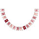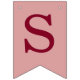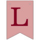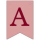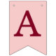 As bandeirolas têm nuances alternadas de rosa, desde mais escuro (rosa poeirento) até mais claro (rosa corado). As letras são de um vermelho borgonha. Há 2 cruzes amarelo-dourado em borgonha entre as palavras. A mensagem é "Deus Abençoe" seguida de um nome de 6 letras que você deve personalizar letra por letra (o padrão é Amélia).