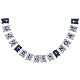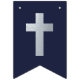 Uma faixa de bandeiras azul-marinho e prata adequada para batismos de meninos, primeiras comunhões ou confirmações religiosas. Boinas azuis-marinho em um fundo de folha de prata falsa, com 4 cruzes de prata falsa em fundo azul-marinho entre as palavras. A mensagem é "Deus Abençoe" seguida de um nome de 4 letras que você deve alterar letra por letra (o padrão é Liam). Há cruzes no início, no final e entre as palavras.