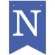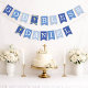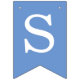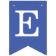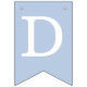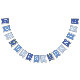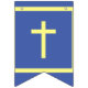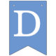 As bandeirolas têm nuances alternadas de azul, de azul mais escuro para mais claro. As letras são brancas, Há 2 cruzes amarelas douradas entre as palavras. A mensagem é "Deus Abençoe" seguida de um nome de 6 letras que você deve alterar letra por letra (o padrão é Daniel).