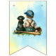 faixa do chá de fraldas. Menino vintage azul e amarelo no boné de beisebol sentado ao lado do cachorro do Black Lab.
