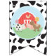 Cartaz de fazenda com estábulo e animais de criação e impressão de vaca.