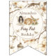 A whimsical design inspired by enchanted forests and magical fairy tales. Featuring hand-painted fairies, woodland creatures, botanical florals, butterflies, and toadstool houses, this dreamy layout captures the wonder of childhood. Perfect for celebrating a first birthday with charm, softness, and a touch of forest fantasy.