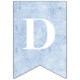 Este bunting de aniversário tem um fundo de neve atrás das cartas que soletram "Feliz Aniversário." Em cada extremidade está uma princesa de conto de fadas vestindo um vestido azul.