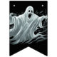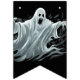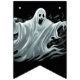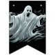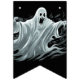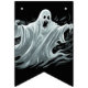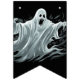 As bandeiras de faixa são mostradas aqui em preto com um design impressão fantasma assustador do Halloween. Personalizar ou comprar como está.