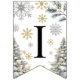 Parabéns, Banner de bunting Winter. Flocos de neve Dourados e prateados e pinheiros. Ideal para a festa de aniversário de inverno.
