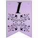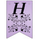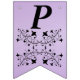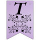 Bandeirinha Feliz Aniversário das Flores Negras Elegantes Roxo