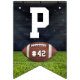 Banner de aniversário feliz no campo de futebol americano com texto personalizável e número de jogador de equipe. Excelente para adeptos do esporte, homens e rapazes.