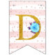 Um belo unicórnio cercado por flores delicadas. O fundo de cada parte tem traçados de pincel de cor rosa e branca e ouro espumante ou pontos de brilho rosa. Cada parte tem uma carta dourada, formando as palavras "feliz aniversário". Ideal para Chás de fraldas e Festas de aniversário infantis.