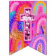 Bandeirinha Feliz Aniversário Glitter Rosa Arco-Íris Dourado