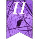 Esta bandeira em forma de bunting Happy Birthday tem um corvo preto solitário sentado em galhos de árvores negras estéreis contra um céu bem roxo. Personalize as cartas e o ano de aniversário com os modelos.
