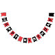 Bandeirinha Feliz aniversario preto e vermelho com bolinhas