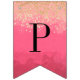 Bandeirinha Feliz Aniversário Rosa Brilhante Com Dourada Largu