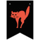 Feliz Halloween Black Orange Party Bunting FlagsDecore uma sala de aula ou em casa para uma festa de piadas com esta decoração legal. Bandeiras de bunting preto personalizáveis com "Feliz Halloween" em uma tipografia branca e aflita. Espaços extras desenhados com um gato laranja assustador.