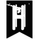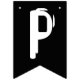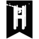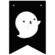 Feliz Bandeiras Negras e Brancos de Fantasmas do Halloween, Este banner festivo de bunting "Feliz Halloween" apresenta cores pretas e brancas, texto decorativo fantasma fofo. Cartas projetadas.
