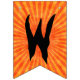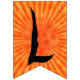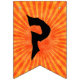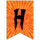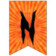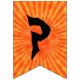 Estas bandeiras de festa de Halloween dizem: "Feliz Halloween!" em texto preto assustador sobre fundo de raios laranja. Na bandeira entre as palavras, há uma silhueta do cavaleiro sem cabeça em um cavalo e segurando uma cabeça de abóbora. Decorra a festa de Halloween com estas bandeiras ousadas.