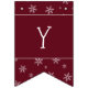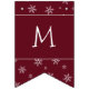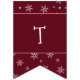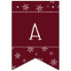 Esta bandeira de bunting apresenta um padrão de floco de neve na burgundy de outono como pano de fundo para a saudação de Feliz Natal. Cada um dos sinalizadores tem um elemento de texto alterável para que a mensagem possa ser atualizada para sua saudação preferida.