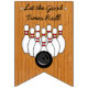 Cartaz de aniversário para a festa de aniversário temática de boliches. Carregue idade e imagens na área de personalização.