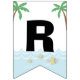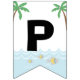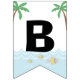 Faixa de festa de aniversário pirata com ursos piratas fofos navegando em um fundo marinho tropical com texto Feliz Aniversário. Você pode alterar o estilo e a cor da fonte e adicionar uma cor de fundo para personalizar esta adorável faixa de festa de aniversário pirata infantil.