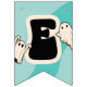 Bandeiras de festas bonitas de halloween com fundo azul ranzinza, um grupo de fantasmas retrorreflectores, aranhas assustadoras e a saudação de "halloween feliz".