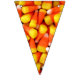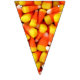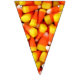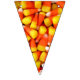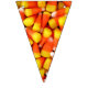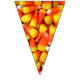 Foto de milho doce em cada triângulo desta faixa colorida de bunting Halloween. Isso ajudará a fazer a decoração para sua próxima festa de Halloween um estalo. Laranja e cotovelo amarelos colocarão seus convidados no humor da festa.