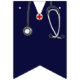 Decoração exclusiva de celebração da escola de medicina ou flâmula de festa de médico com jalecos de hospital azul-marinho, estetoscópio e listras.