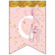 Este é o artigo perfeito da decoração do chá de fraldas que se transforma um presente para o berçário do bebê quando o chá se acaba. Mostrado aqui com primeiramente e nome do meio, se seus ajustados do nome, apenas mudam as letras. Se você precisa uma disposição diferente, apenas contacte-nos e nós criar-a-27&z para você. Reserve por favor 1-2 dias úteis por o tempo do design em seu pedir. Qualquer coisa esse ajustados na bandeira. Nós estamos felizes personalizá-la para você se você nos contacta. A coleção do bebê do balé tem um teste padrão de listras brancas largas com uma borda de brilho do ouro na inversão diagonal para formar um teste padrão da viga em cada borda. Uma beira scalloped do teste padrão do brilho do ouro do falso leva através de cada bandeira da estamenha da flâmula. Há um pintado mão cora tutu cor-de-rosa com jóias e plissados sparkling. Uma pintura adicional de um par de calçados de dedo do pé do cetim com gravatas entrelaçadas da fita termina o design. Copyright todos os direitos reservados.