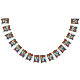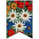 Uma imagem de um teste padrão floral com um olhar do bordado das flores alpinas brancas de Edelweiss de Europa em seu produto. Cores azuis, vermelhas, amarelas, e brancas. Alpinum do Leontopodium da suiça, da Alemanha, e da Áustria.
