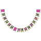 Juntar-se ao tema da festa é uma faixa de festa com as letras "Parabéns" em cada bandeira com flores e uma casa de cogumelos ao fundo. Como parte do tema "Black Fairy Lovely Birthday", este é um design bonito para as meninas no dia especial de celebração.