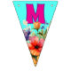 Celebrar a mãe com este único decor de banner de bunting. Flores selvagens decoram cada bandeira com letras que soletram "ama sua mãe" em letras rosa brilhantes. Outras cores são azul-aqua, amarelo e pastel para as flores. Você também pode escolher as bandeiras em forma de swallowtail, mas os ajustados design são os melhores nos triângulos. Use para seu aniversário ou Dia de as mães, ou para celebrar uma conquista.