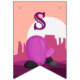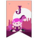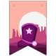 Bela vaqueira rosa, no deserto ocidental qualquer idade de aniversário, bandeiras de bunting - bonito, fofa, cinzenta e rosa! Design para decorar para sua festa de aniversário. Há cacto, canyons, estrelas, cavalo-palha, botas, e ferradura tudo a rosa. Especialmente crianças pequenas apreciarão o simples e fofo design de temas ocidentais.