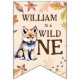 Um filhote de lobo bonito selvagem uma floresta festa de aniversário banner feliz de aniversário que enche bandeiras, você pode personalizar primeiro e último bandeiras com nome infantil e no meio o número de aniversário.