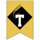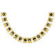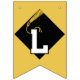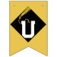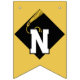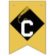 Dourada decoração de parabéns de formando com padrão de bonés de formatura pretos.