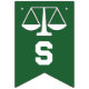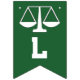 Cartaz de parabéns de graduação de advocacia criativa, com escalas de justiça em fundo verde.