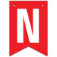 These bright red and white bunting flags spell 'Grand Opening!'. There are also two flags that you can display your company logo.