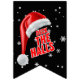 Esta guirlanda de bandeirolas apresenta a frase "Deck The Halls" em uma fonte de impressão Zing Rust Base com letras vermelhas e contorno branco sob um chapéu de Papai Noel com uma coleção de flocos de neve ao fundo neste estilo e tema do dia de Natal. Todas as bandeiras têm impressão unilateral segura para uso externo, feitas com plástico poliestireno resistente e corda de plástico grossa, tendo (16) bandeirolas de cauda de andorinha de 5,5" x 8" em uma corda de 6' de comprimento.