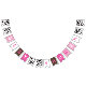 Dois tons diferentes de impressão cor-de-rosa, preto, branco, castanho e vaca compõem esta faixa de "Chá de fraldas".