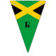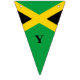 Celebrate your birthday in style with this patriotic Jamaican flag bunting. The editable text on the flags spells out HAPPY BIRTHDAY with a blank flag on either end, plus a blank flag between the two words. There's 16 flags in total.