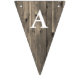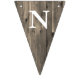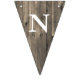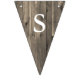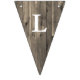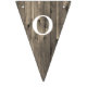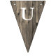 Este beliche de estilo rústico é feito de uma design de madeira escura. Como mostrado, o bunting diz "parabéns". No entanto, se você quiser mudar o texto, há um modelo que você pode usar para mudar facilmente as letras.