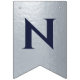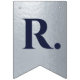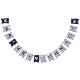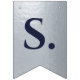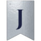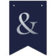 Uma faixa de bandeiras para um casamento com cores de marinho e prata, com as palavras "Sr. & Sra." e o nome da família do novo casal e 3 corações. O texto encontra-se em bonés azuis marinhos sobre fundo falso de folha prateada, os corações e as ampersas são folhas falsas de prata sobre fundo azul marinho. Apropriado para 7 letras como Johnson (o padrão) ou Jackson.