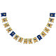 Um ajustado de bandeiras de ouro azul para batismos de menino, primeiros sindicatos ou confirmações religiosas. Bonés azuis reais sobre fundo de folha de ouro falso, com 4 cruzes de ouro falso sobre fundo azul real entre as palavras. A mensagem é "Deus abençoe" seguida de um nome de 4 letras que você deve alterar a letra por letra (o padrão é Liam). Há cruzamentos dourados no início, no fim e entre palavras.