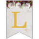 Bandeirinha Nomes de Casamento Floral Peônias Burgundy Mármore