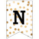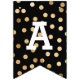Os painéis alternos de preto e branco com um scatter de pontos do brilho do ouro do falso fazem a isto a bandeira dos "parabéns" um divertimento e uma adição clássica a sua celebração. Uso para graduações, promoções, festas de noivado e alguma outra comemoração do valor da ocasião. As letras podem ser mudadas usando "personalizam-na" opção!