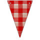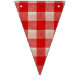 O olhar corajoso do saco de gunny de um pano rústico da fibra natural com uma textura da juta ou das canvas em um guingão vermelho e branco verificou o design da xadrez de serapilheira iluminará acima de seu produto.