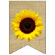 A estamenha embandeira a bandeira. Data do casamento com iniciais da noiva e dos noivos. Um coração vermelho. Grandes girassóis amarelos em um fundo da imagem de serapilheira. Personalize-o. Aperfeiçoe para um casamento rústico do celeiro do país ou um chá de panela do quintal do condado do chique. Para ver produtos de coordenação, visite por favor minha loja "a princesa de Hungarican" em www.zazzle.com/hungaricanprincess*. Olhe em minha categoria do departamento do casamento ou do chá de fraldas. Parabéns!.