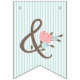 Bandeja de caserna de algodão, com padrões azuis de ovo e corais de listras, bolinhas e padrões de flores de bonito robin em cada bandeira. O texto Sr. & Sra. decorar as bandeiras em direção ao meio da faixa. Excelente para a sua recepção de casamento ou janto de ensaio.