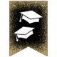 Festa de formatura elegante com tema preto e ouro, incluindo na moda faux gold glitter, mortarboards, estrelas, a expressão "parabéns formando" e o ano de aula.