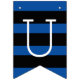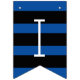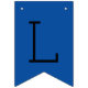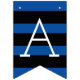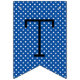 O banner de bunting de festa de formatura na moda contém "Parabéns!" com detalhes do boné, faixa e padrão de bolinhas. Esquema de cores preto, branco e azul real (pode ser personalizado para corresponder às cores da escola).