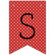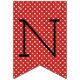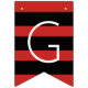 O banner de bunting de festa de formatura na moda contém "Parabéns!" com detalhes do boné, faixa e padrão de bolinhas. Esquema de cores preto, branco e vermelho (pode ser personalizado para corresponder às cores da escola).
