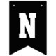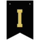 Banner moderno e simples de bunting de festa de formatura apresenta "Parabéns!" com destaque de formando Bandeiras pretas de bunting com letras brancas e douradas alternadas no estilo de letra de varsidade esportiva. Nota, as cores podem ser personalizadas para corresponder às cores da escola ou às cores da festa.