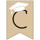 O banner de bunting de festa de formatura cônica na moda e rústica contém "Parabéns!" com boné formando, listras modernas e detalhes do padrão de bolinhas doce. Cor preta e branca numa kraft neutra que o fundo cor de papel castanho (pode ser modificado).